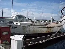In March 2007, mention of the Phoenix, gutted and minus both masts and its hand-carved Phoenix figurehead, showed up in an ad on Craigslist which began, "FREE: 50-foot yacht. . ." John Gardner of Lodi, California, then 31, took possession of the Phoenix and had it towed up the Sacramento River, hoping to restore it and use it to rehabilitate young people recovering from substance abuse. During the journey, the yacht collided with a dock and had to be kept afloat with the help of a battery-powered bilge pump.[21] In August 2010 the Phoenix went down off Tyler Island despite Gardner's efforts to keep it from sinking.[22] In September 2010 Dr. Naomi Reynolds, granddaughter of the original Dr. Reynolds, took possession of the yacht, resting in 25 feet of water in the Mokelumne River.[23] A diver inspected the vessel and found no serious damage.[24] Peace activists are currently restoring the Golden Rule (2013) and plan to resume peace activities in it. They hope to raise funds to raise and restore Phoenix of Hiroshima next.[25][26]