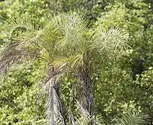 Phoenix paludosa (paludosa, Latin, swampy), also called the mangrove date palm,[2] is a species of flowering plant in the palm family, indigenous to coastal regions of India, Bangladesh, Myanmar, Thailand, Cambodia, Sumatra, Vietnam and peninsular Malaysia.[3] They are also known as Sea Dates.[4] The trees grow in clusters, to 5 m high, usually forming dense thickets. The leaves are 2 to 3 m long and recurved.[5] Similar to Nypa leaves, but smaller and placed towards the plant's top.