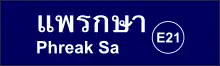 Phraek Sa station (Thai: สถานีแพรกษา, pronounced [sā.tʰǎː.nīː pʰrɛ̂ːk.kā.sǎː])[1] is a BTS Skytrain station, on the Sukhumvit Line in Samut Prakan Province, Thailand. It is located next to Robinson Lifestyle Samut Prakan Mall and Big C Supercenter Samut Prakan.