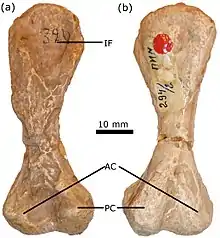 Phreatophasma is an extinct genus of synapsids from the Middle Permian of European Russia. It includes only one species, Phreatophasma aenigmatum, which is itself known from a single femur found in a mine near the town of Belebei in Bashkortostan. Phreatophasma comes from a fossil assemblage that is latest Ufimian to earliest Kazanian in age under the Russian stratigraphic scheme, correlating with the Roadian Age (earliest Middle Permian, about 270 million years ago) under the international stratigraphic timescale. Because the species is based on a single specimen with few diagnostic anatomical features, uncertainty remains as to where it belongs in tetrapod phylogeny; originally interpreted in 1954 as an enigmatic "theromorph" synapsid (hence its species name aenigmatum) by Soviet paleontologist Ivan Yefremov, Phreatophasma was later described as a therapsid incertae sedis by American paleontologist Alfred Romer in 1956 and then as a member of a basal synapsid family called Caseidae starting with Everett C. Olson in 1962. Olson's classification was later supported by Canadian paleontologist Robert Reisz in 1986 and American paleontologist Robert L. Carroll in 1988. Ivakhneneko et al. (1997) and Maddin et al. (2008) both considered Phreatophasma an indeterminate synapsid.[1][2]