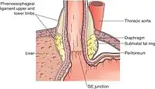 • Kwok H, Marriz Y, Al-Ali S, Windsor J (1999). "Phrenoesophageal ligament re-visited". Clin Anat. 12 (3): 164–70. doi:10.1002/(SICI)1098-2353(1999)12:3<164::AID-CA4>3.0.CO;2-N. PMID 10340456.