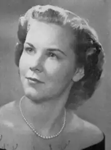 A native of Rumson, New Jersey, she is the daughter of Mr. and Mrs. Henry R. Stadler.[1] She graduated from Rumson-Fair Haven Regional High School.[1] She then attended a four-year college preparatory course at Linden Hall from which she graduated in 1952. While at Linden Hall, she was president of the activities council, vice president of her class, and won varsity letters in basketball, field hockey, volleyball, swimming, tennis, and table tennis. She had then compiled more activity points than any other girl in the school's history.[2][3] She later attended Ursinus College, graduating in 1956.