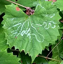 | Leaf mines caused by Phyllocnistis vitegenella larvae | |