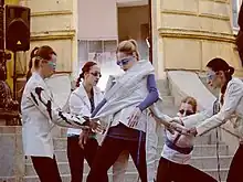 'I think physical theatre is much more visceral and audiences are affected much more viscerally than intellectually. The foundation of theatre is a live, human experience, which is different from any other form of art that I know of. Live theatre, where real human beings are standing in front of real human beings, is about the fact that we have all set aside this hour; the sharing goes in both directions. The fact that it is a very physical, visceral form makes it a very different experience from almost anything else that we partake of in our lives. I don’t think we could do it the same way if we were doing literary-based theatre.'[2]