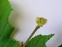 Phytoptus avellanae is an acarine gall-mite species inducing big bud galls of up to 10 millimetres (0.39 in) across, sometimes slightly open, on the buds of hazel (Corylus avellana) and on filbert (Corylus maxima).[1] Synonyms include Phytocoptella avellanae, Eriophyes avellanae, Calycophthora avellanae, Phytoptus coryli, Phytoptus pseudogallarum, and Acarus pseudogallarum.[2] The mites are white, about 0.3 mm long, with numerous tergites and sternites.[3] Two forms of P. avellanae exist, a gall causer and a vagrant form that has a more complex life-cycle and does not form galls.[4]