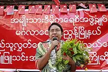 - ↑ "NLD AIDS activist to run for Parliament". Mizzima. 7 February 2012. Archived from the original on 8 February 2012. Retrieved 9 February 2012.