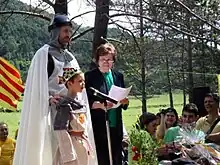 Ceremony at Pi de les Tres Branques of Folgueroles (at left), May 2014