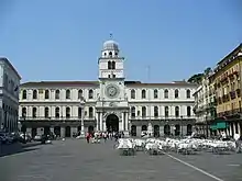 Piazza dei Signori is a city square in Padua, region of Veneto, Italy. This piazza for centuries hosted official civic and government celebrations, while the larger squares of Piazza delle Erbe (herbs) and Piazza della Frutta (fruits) hosted commerce and public festive celebrations. The square is dominated by the famous Clock Tower.