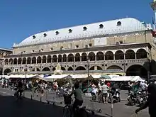 An engraving nearby the square made by municipal authorities in 1277 reveals ancient Paduan units of measurement—the "copo" and "staro" for the measure of flour and grains, the "quarelo" for the measure brick, and the "brazzo" or "brazzolaro" (arm), which was used to measure the fabric. These standards allowed for a strict control of the quantities and measures of the goods that the traders exchanged in the Piazza delle Erbe and the Piazza della Frutta.[1]
