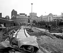 Laying tram tracks for the new Metrolink in 1991