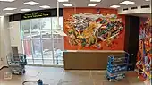 Yatika Starr Fields' 100' x 20' mural in the Pickens Learning Commons includes several different scenes from Northern Oklahoma College including a woman looking through a microscope, show lambs, another woman looking through a stack of books, men in space looking through VR systems, NOC’s mascot, Mav the bull, the Roustabouts, and the different performing arts. "These all flow in a beautiful display of colors and an incredible show of knowledge."[8]
