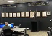 In January, 2020 Pickens Museum opened an exhibition at City Central in Ponca City, Oklahoma titled “Winter in New York” which included three large paintings of Seventh and Eighth Avenues in New York City. The murals by Oklahoma artist Roger Disney, depict traffic near Times Square evoking the famous New Year’s Eve Ball that descends atop One Times Square.[16]