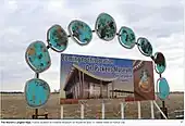 In August, 2018 metallic sculptor Stephen Schwark put up a 20 foot Naja around the future location for Pickens Museum 2 miles west of Ponca City on Highway 60. The Naja is a traditional motif used by Navajo silversmiths as part of a squash blossom. One of the most important forms of Navajo and Southwestern Native American jewelry, is the Squash Blossom Necklace. Most are made of a string of plain round silver beads, interspersed with more stylized "squash blossoms", and feature a pendant, or "naja", hung from the center of the strand. According to the Navajo, the symbol of the Naja represents strength and protection and is held in very high esteem by the Navajo as well as other peoples.[20][21]