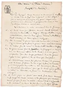 Pictet traces its origin to the foundation of Banque De Candolle Mallet & Cie in Geneva on 23 July 1805. On that day, Jacob-Michel-François de Candolle and Jacques-Henry Mallet signed, with three limited partners,[4] a Scripte de Société (memorandum of association) to form a partnership.[5] Like all Geneva banks at the time, it started out trading in goods but soon abandoned trading to concentrate on assisting clients in their financial and commercial business and advising them on managing their wealth. By the 1830s, it held a broad range of securities on behalf of clients, to diversify their risks.
