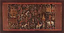 A pidan is a type of silk cloth used in Cambodian and Khmer weddings, funerals, and Buddhist ceremonies as a canopy or tapestry. Pidan are often decorated with images of wats, nāgas, apsaras, scenes from the life of Buddha, Angkor Wat, animals (especially elephants), and plants.[1]