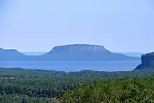 Pie Island (French: Île Pâté, or simply Le Pâté) is an island in Lake Superior, Ontario, Canada, located about 10 kilometres (6.2 mi) south of Thunder Bay and 25 kilometres (16 mi) north of Isle Royale, Michigan. It is about 12 kilometres (7.5 mi) long with an area of 46 square kilometres (18 sq mi). Pie Island is readily visible from the shoreline and high parts of the city of Thunder Bay.