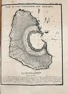 Captain Péron reports that he was marooned three years (from 1792 to 1795) on New Amsterdam Island or Île Amsterdam. He wrote an account about being marooned for 40 months gathering sealskins on that lonely Southern Indian Ocean island.[2][3] There was confusion in the early days between Amsterdam and Saint Paul Islands, and it is clear that the island is the one now known as Saint Paul.[1] In February 1793 Sir George Staunton was on his way to China on Lion as secretary to the Macartney embassy on the East Indiaman Hindostan. At Île Amsterdam they found a sealer named Perron and 4 others on the southern of the two islands, now called Saint Paul Island.