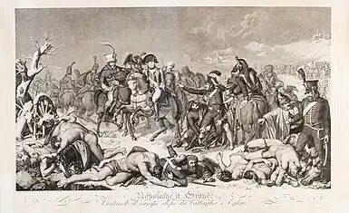 To perfect his technique, he went to Milan, where he studied with Giuseppe Longhi. He spent nine years there, mostly as an assistant to Longhi, but continued to produce his own engravings. A notable exception came when he was entrusted with a commission from Eugène de Beauharnais, the Viceroy of the Kingdom of Italy. It was to be a depiction of Napoleon, visiting camp after the Battle of Eylau. The engraving was based on a painting by Antonio Raffaele Calliano, and won a gold medal for Anderloni in 1810.[2]