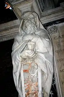 He always remained faithful to his late Mannerist training by Brambilla, and although he became Gian Andrea Biffi's comprimario for the creation of the statue of the Pieta to be placed on the funeral monument of Pellegrino Tibaldi, he never allowed himself to be influenced by the more restless style of the young Milanese[4]