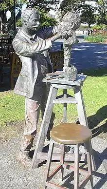 Porcelli working on a statue of C. Y. O'Connor, 1910 or 1911.