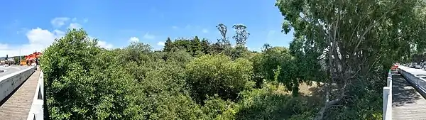 The Pilarcitos Creek watershed holds a considerable biodiversity and is confirmed habitat for the endangered San Francisco garter snake.[11] arroyo willow (Salix lasiolepis) and red alder (Alnus rubra) are the dominant riparian trees in the lower watershed, with coast Douglas fir (Pseudotsuga menziesii var. menziesii) forest.[12]
