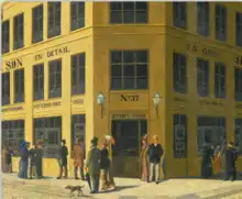 Bing and his brother Jacob Herman Bing were the proprietors of H. J. Bing & Søn, a bookshop started by their father.[31] In 1848, he opened a combined art and gallantry shop on the ground floor of the building. It was recognized as the most elegant shop in Copenhagen and was even prior to its official opening visited by Christian VIII. It was one of the first shops in the city with street-level shop windows. Det Bingske Etablissement, as it was now called, was also publishing its own books. The previously founded lithographic workshop Bing & Ferslews lith. Etablissement was expanded with a book printing and stereotype business. This firm was in 1857 taken over by Jean Christian Ferslew and H. J. Bing & Søn was in 1863 ceded to Bing's son Jacob Martin Bing and son-in-law Benny Henriques.[32]