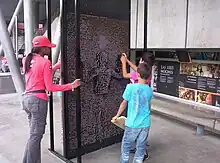 A 4-by-8-foot (1.2 m × 2.4 m) pinscreen is at the Swiss Science Center Technorama in Winterthur, Switzerland. This screen is like a large 3D drawing pad that can work with different sizes of paintbrushes for calligraphy.