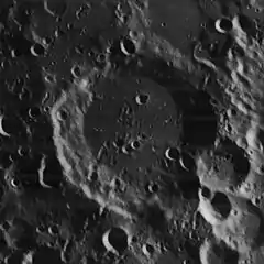 Pingré is a lunar impact crater that is located near the southwest limb of the Moon, beyond the large crater Phocylides. It lies to the northwest of the huge walled basin Bailly, and to the east of the smaller Graff. Due to its location, this crater appears foreshortened when viewed from the Earth.