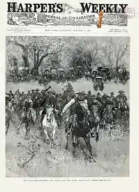 One band of Absentee Shawnee led by Big Jim (Wapameepto), grandson of Tecumseh, opposed absorption into white society for fear of losing their cultural traditions.[10] They had been living illegally north of the North Canadian River until November 1886 when soldiers from Fort Reno forced them to move south of the river to a place near Shawneetown. The soldiers burned their old houses and destroyed improvements they had made to the land so they could not return to their old homes. They wintered without shelter. Within three years they managed to build log houses and plant small fields and orchards amidst the White Turkeys, another band of Absentee Shawnees. By 1889 it was evident that the land they were now occupying would be broken up and sold.[11]