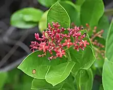 Pinochia corymbosa subsp. portoricensis, synonym Forsteronia portoricensis,[3] is endemic to Puerto Rico, and typically grows in moist regions of woods, thickets, or forests. It can reach a maximum length of 7 m (23 ft), and produces a large quantity of red flowers.[4]