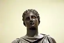 Piraeus Artemis refers to two bronze statues of Artemis excavated in Piraeus, Athens in 1959, along with a large theatrical mask (possibly in honor of Dionysus) and three pieces of marble sculptures. Two other statues were found in the buried cache as well: a larger-than-lifesize bronze Late Archaic Apollo (Piraeus Apollo) and a similarly sized bronze fourth century-style Athena (Piraeus Athena).[1] Both statues are now exhibited in the Archaeological Museum of Piraeus in Athens.