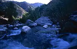 One well-known trail follows Piru Creek through the lower part of Piru Gorge from Frenchman's Flat to the confluence with Fish Creek,[13] and it is possible to continue all the way south from there to Lake Piru with much scrambling and wading.[14] The entire hike can require more than two days to complete, and flooding from Piru Creek is a potential danger.[15][16]