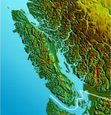 - ↑ Elevation derived from ASTER Global Digital Elevation Model, using GeoLocator, and BCGNIS coordinates