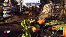 The game's target audience were players who liked action games and fans of Plants vs. Zombies. The game's tone was not as serious and grim as other shooters such as Call of Duty and Battlefield. This enabled players to simply "sit down, enjoy the game, and laugh out loud" because of its light-heartedness.[29] The team ensured that teamwork, balanced character gameplay and skills are important pillars in the game's gameplay, similar to traditional action games.[30] To introduce tactical depth to the game while maintaining a sense of playfulness, the team took inspirations from other team-based shooters with colorful visuals such as Team Fortress 2.[27] To make the game more tactical, the team allowed players to spawn stationary plants and zombies, which help assist combat.[31] Another way to add tactical depth was the introduction of character variants. Each of them has unique statistics that slightly alter the gameplay experience.[30]