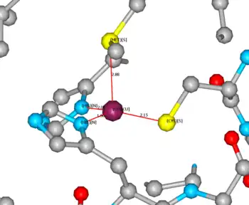 - ↑ Randall DW, Gamelin DR, LaCroix LB, Solomon EI (February 2000). "Electronic structure contributions to electron transfer in blue Cu and Cu(A)". Journal of Biological Inorganic Chemistry. 5 (1): 16–29. doi:10.1007/s007750050003. PMID 10766432. S2CID 20628012.