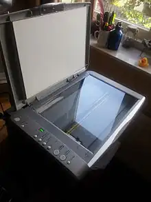 In office copiers and scanners, the platen is a flat glass surface on which operators place papers or books for scanning. The platen is also called the flatbed. Platens are also used in some printers, such as the dot-matrix printer.