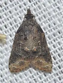 The wingspan is 13–17 mm.[2] The forewings are sooty black with a paler terminal line.[3]