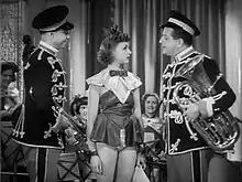 ![]() Frank Atkinson, Betty Ann Davies and Stanley Holloway in a nightclub scene. | |