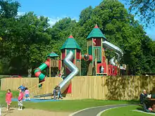 Playdale Playgrounds is a family-run business. The Croasdale family have worked in the forestry and allied timber trades since 1735. In 1978 Jack and John Croasdale advanced into playground design, manufacturing and installation and established Playdale Playgrounds in the Lake District with four employees. Playdale later had over 140 employees with two factories in Cumbria.[1] In 1981, Playdale Playgrounds designed and launched the Adventure Trail which became a landmark product range, eventually the stainless steel 'City' range followed.[2] In 1996 Sir Chris Bonington opened the company's new factory and offices in Haverthwaite. By 1999 all of Playdale Playgrounds products were Kitemarked to BSEN 1176.[2]