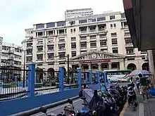 A number of notable buildings and structures have been built in and around the vicinity of Plaza Lacson. Aside from the Santa Cruz Church on its north side, the plaza's most famous landmark is the Roman R. Santos Building, one of Manila's few surviving examples of pre-World War II neoclassical architecture. The building, first built in 1894 and expanded in 1957, was the headquarters of Prudential Bank until 2005, when it was acquired by Bank of the Philippine Islands (BPI).[9] BPI continues to maintain a branch on the building's ground floor.[10] Previously, however, the building was the headquarters of the Monte de Piedad Savings Bank, the former banking institution of the Catholic Church in the Philippines, from 1894 to 1937, and also served as an American Red Cross-operated hospital from 1945 to 1947.