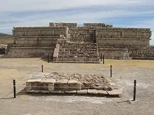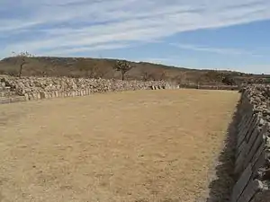 Plazuelas is a prehispanic archaeological site located just north of San Juan el Alto, some 2.7 kilometers (1.57 mi.) north of federal highway 90 (Pénjamo-Guadalajara), and about 11 kilometers (6.8 mi.) west of the city of Pénjamo in the state of Guanajuato, Mexico.[1] The site is open to the public; it is dominated by a large, rectangular plaza with several pyramidal structures and platforms, along with a massive ball court. To the north of the structures is a field of boulders with thousands of glyphs carved into them.