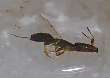 Pleistodontes froggatti is a species of fig wasp which is native to Australia. It has an obligate mutualism with the Moreton Bay Fig, Ficus macrophylla, the species it pollinates.[1] Outside Australia, populations have become established in Hawaii (where it was deliberately introduced)[2] and New Zealand where it was either accidentally introduced or arrived by long-distance dispersal.[3]