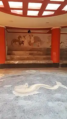 The ancient steps, interior decorations and the mosaic of the Roman bath in Plombières-les-Bains
