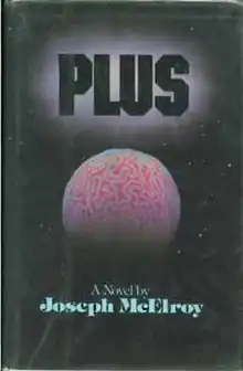 Plus is Joseph McElroy's fifth novel. Set in some unspecified future, it tells the story of Imp Plus, a disembodied brain controlling IMP, the Interplanetary Monitoring Platform, in earth orbit. The novel consists of Imp Plus's thoughts as he tries to comprehend his limited existence, while struggling with language, limited memories, and communicating with Ground Control. The plot is driven by Imp Plus's recall of fragments of his past and of language, his improving comprehension of his present, all while his medical condition gradually deteriorates.