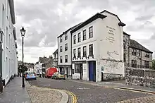 Founded in 1947 in a Grade II listed town house in Looe Street, Plymouth Arts Centre was opened by art historian Kenneth Clark.[1] The building is listed as part of a significant group of seventeenth and eighteenth century town houses in the street, many of which are listed. It is a three-storey building that at one time was used as a shop. It has a painted brick front and a steep slate half-hipped roof with deep moulded eaves.[2]