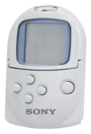 The PocketStation is a memory card peripheral by Sony Interactive Entertainment for the PlayStation home video game console.[3] It was released in Japan in 1999. The device acted not only as a memory card, but was interactive itself via a small monochrome LCD display and buttons on its case. Many PlayStation games included software that could be downloaded and played on the PocketStation. A release in Europe and North America was planned, but was ultimately canceled. The PocketStation shares similarities with Sega's VMU for the Dreamcast.