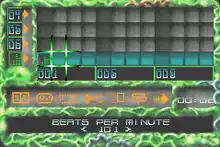 Pocket Music is a music game that resembles a basic music tracker, allowing players to compose tracks of music to a maximum of five and a half minutes.[1] Tracks are composed using pre-recorded samples, with 600 on the Game Boy Advance version and 150 for the Game Boy Color.[2] Samples are categorised into six categories by genre, including drum and bass, techno and breakbeat. Players compose tracks by placing the samples upon a grid with a maximum of six channels playing at once. The Riff Editor allows players to use the samples to change the order of notes in a sample and add effects.[3] The Game Boy Color version allows players to trade songs across devices using the Game Link Cable.[2] Pocket Music has a number of pre-programmed tracks saved to showcase the capabilities of the game, including a version of "My Name Is" by Eminem.[4] The game also features six different skins to customise the appearance of the user interface.[3]