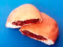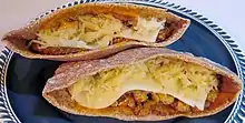 Pocket sandwich is a sandwich which is made using a single piece of folded or hollowed bread, such as a pita, which is made from dough cooked with fillings inside.