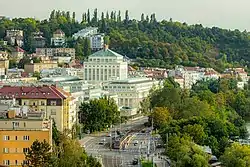 Podolí Waterworks (in Czech: Podolská vodárna) is a big water supply equipment located in capital city of the Czech Republic, Prague, neighborhood Podolí. More precisely, it is located in Prague 4 on the right side of Vltava river between Vyšehrad and Swimming stadium Podolí (Plavecký stadium Podolí). The current complex was built between 1925–1929[1] on the place where former water supply infrastructure was located. In 1990s, it was completely reconstructed. From 2003, it serves only as backup water source in case of failure of other treatment plants. The complex was built in neoclassical architecture style and it is protected as a Cultural monument. It also serves as a Prague Waterworks Museum.[2]