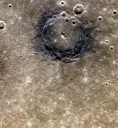 Poe is a crater on Mercury. It has diameter about 77 km and is situated in northern part of Caloris Planitia. It is centered on 43°46′N 159°06′E / 43.76°N 159.1°E[1]